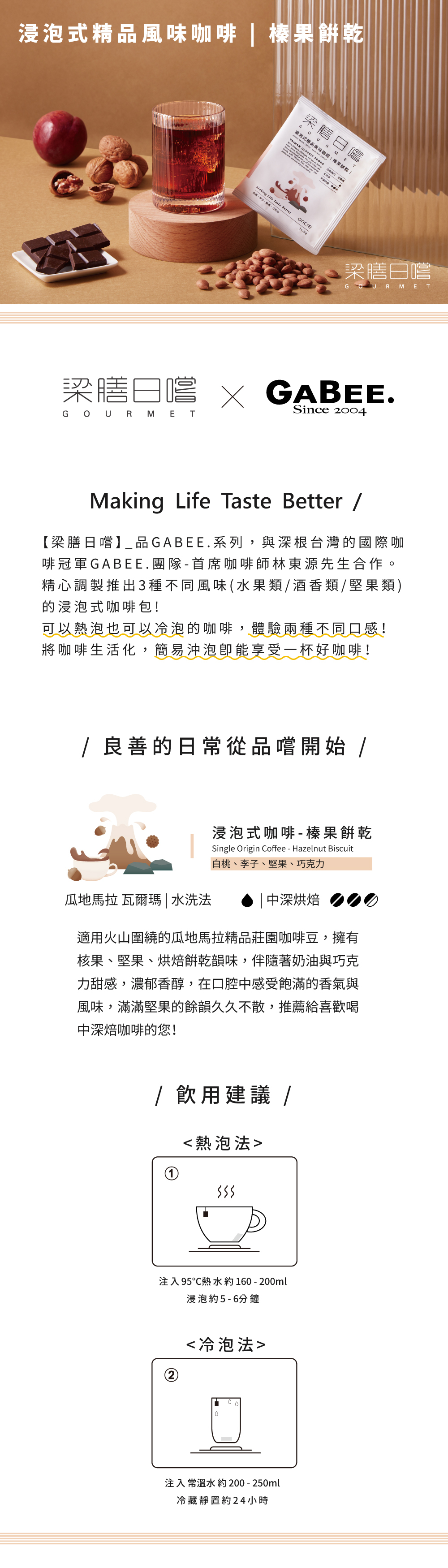 【梁膳日嚐】浸泡式精品風味咖啡 (榛果餅乾)