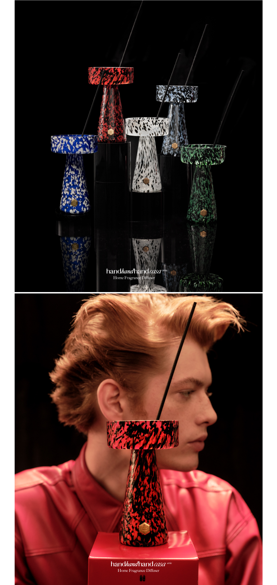 此系列擴香採用手工吹製工藝,每件都是獨一無二的藝術品,瓶身上堆疊的色彩,創造出油畫般的效果。配以經典香調,是擴香,也是家居裝飾,完美體現品牌追求的手感、美學與意義。