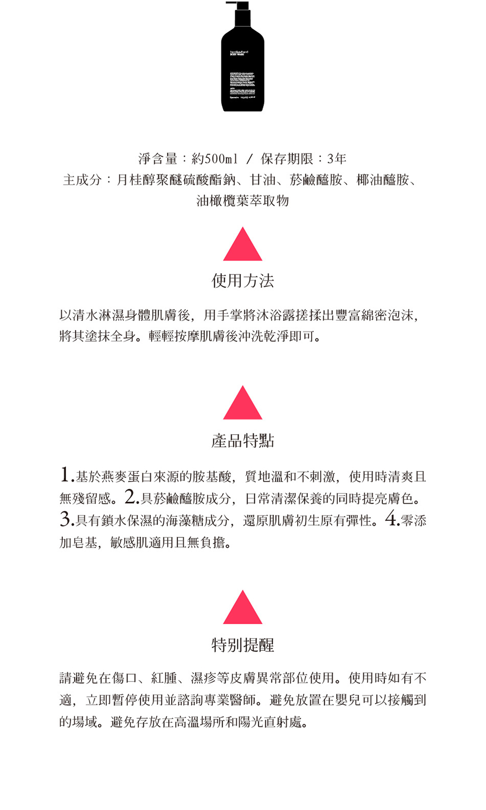 1.基於燕麥蛋白來源的胺基酸,質地溫和不刺激,使用時清爽且無殘留感。