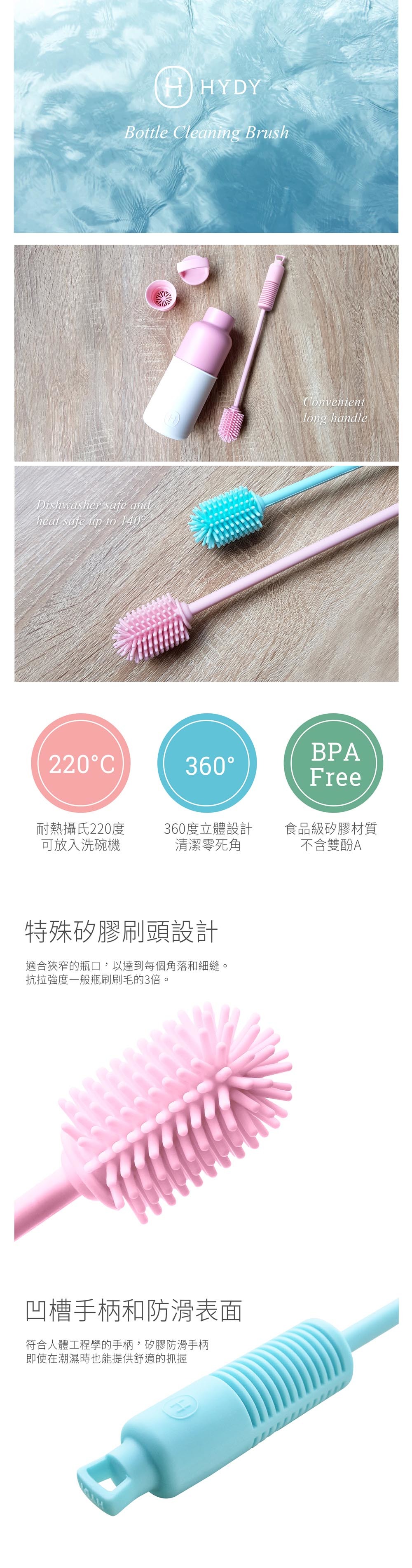 長手柄使清潔更容易,容量較大的保溫水瓶、運動水壺、咖啡壺...等,都可以輕鬆清洗瓶底。