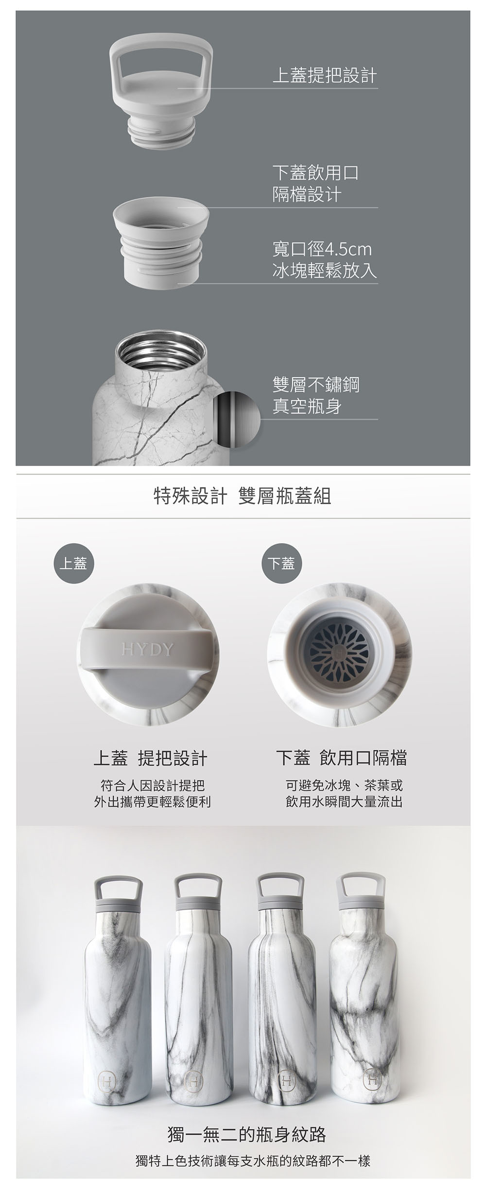 HYDY時尚保溫水瓶-大理石(積雲)480ml
