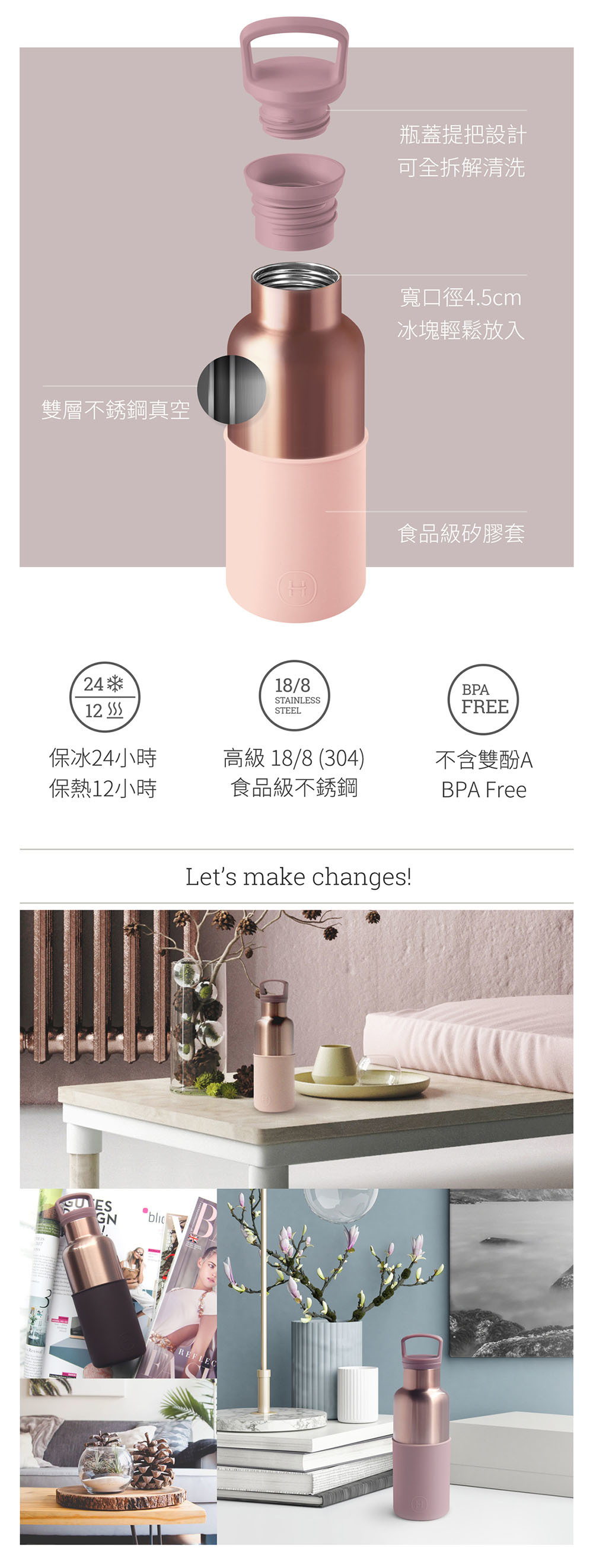 ■ 保溫瓶體:18/8 (304) 不鏽鋼