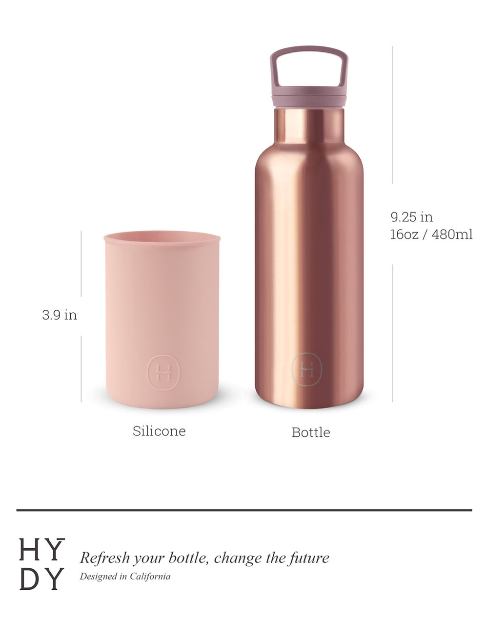 HYDY時尚保溫水瓶-蜜粉金(乾燥玫瑰)480ml