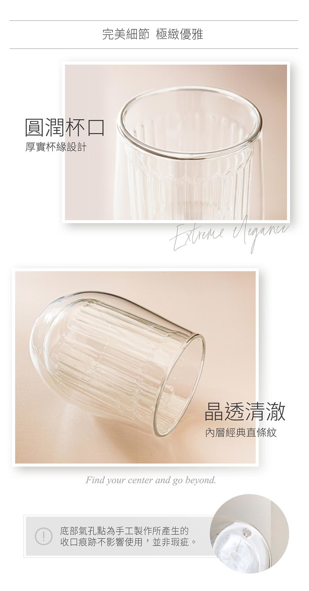 「雙層玻璃設計」冷飲不冒水珠、熱飲不燙手,滿足您的多樣使用需求。
