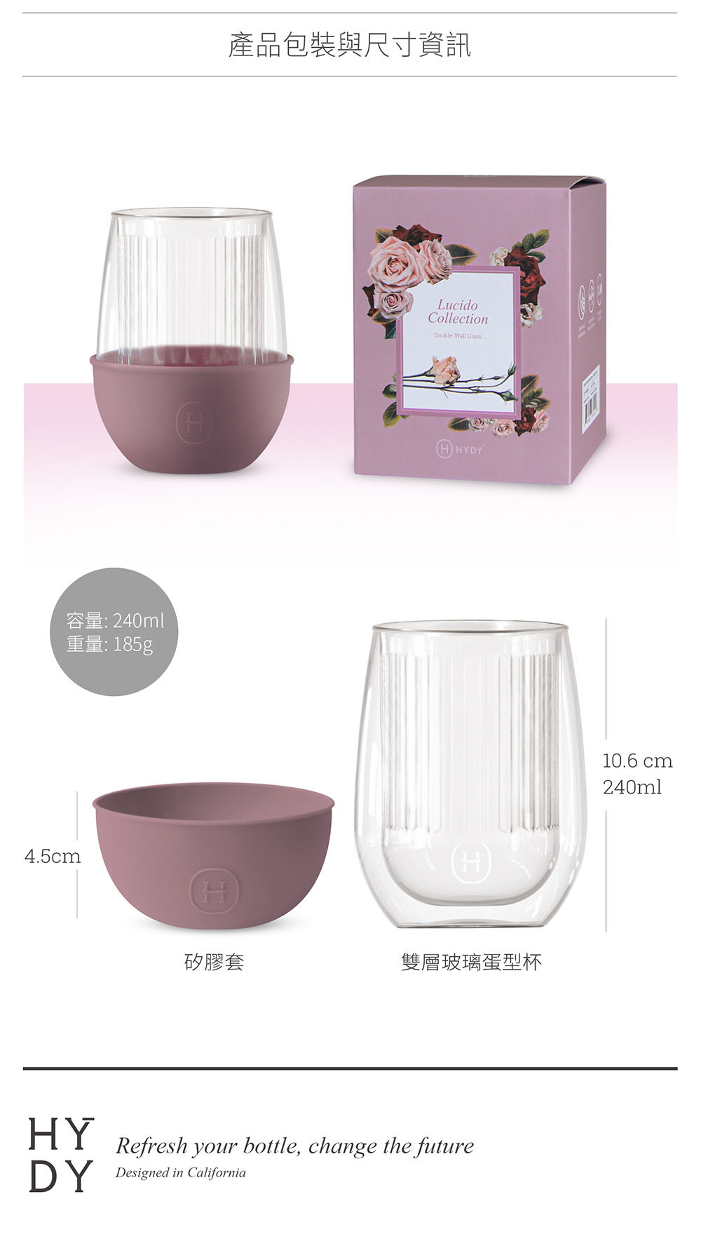 HYDY雙層玻璃蛋型杯-經典直條紋(乾燥玫瑰)