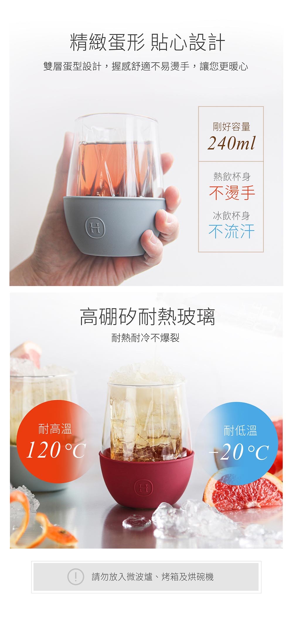 符合人因雙層玻璃杯身設計,易握不燙手及不滑手。