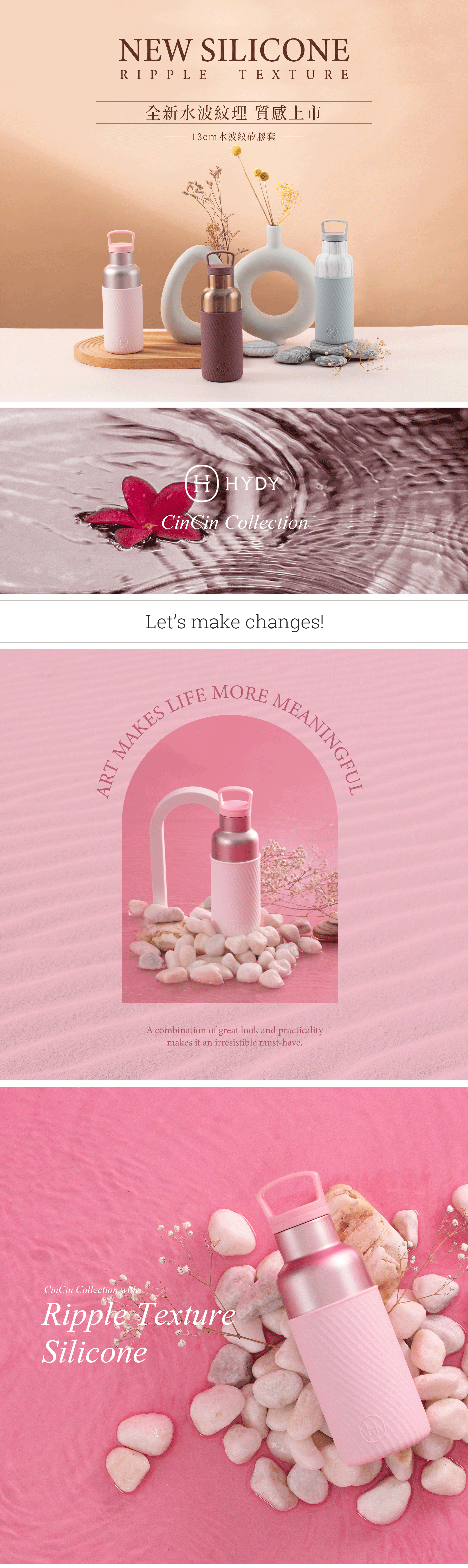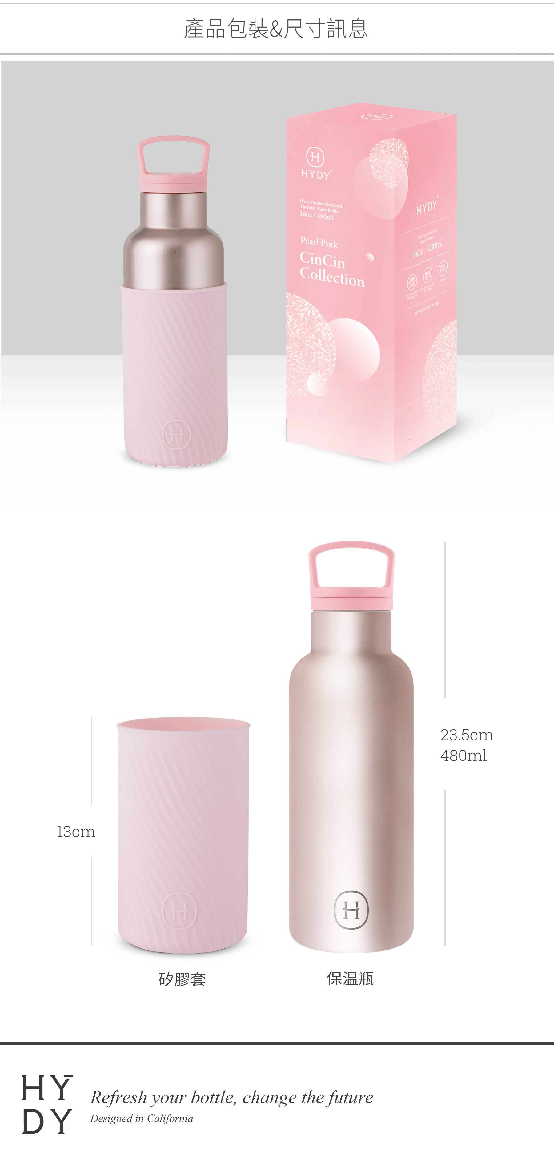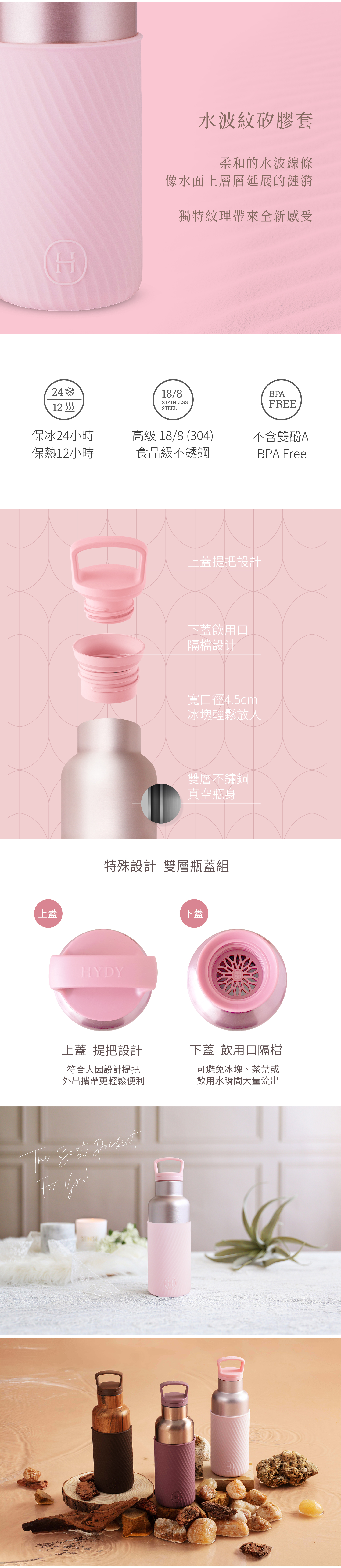 HYDY時尚保溫水瓶-珠光粉(櫻花粉水波紋)480ml
