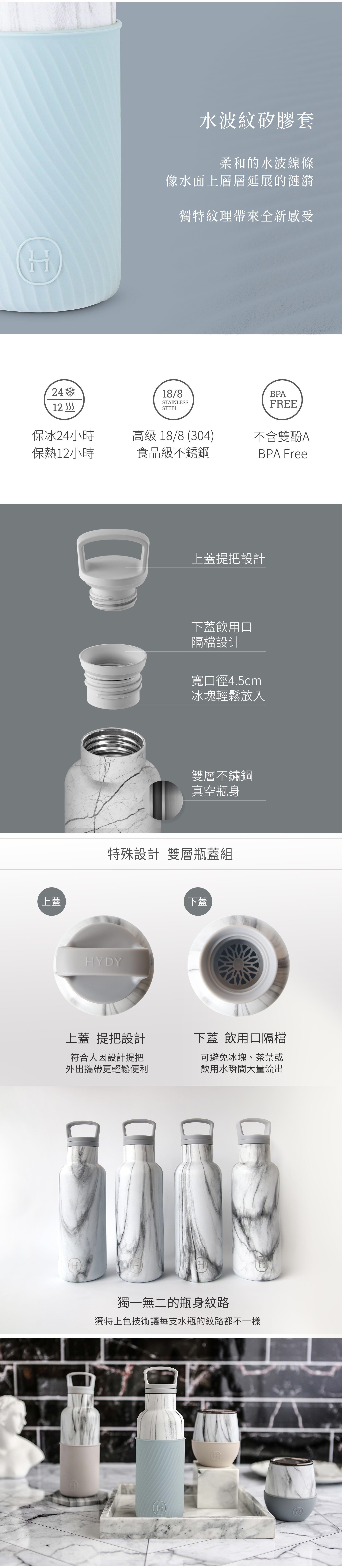 HYDY時尚保溫水瓶-大理石(積雲水波紋)480ml