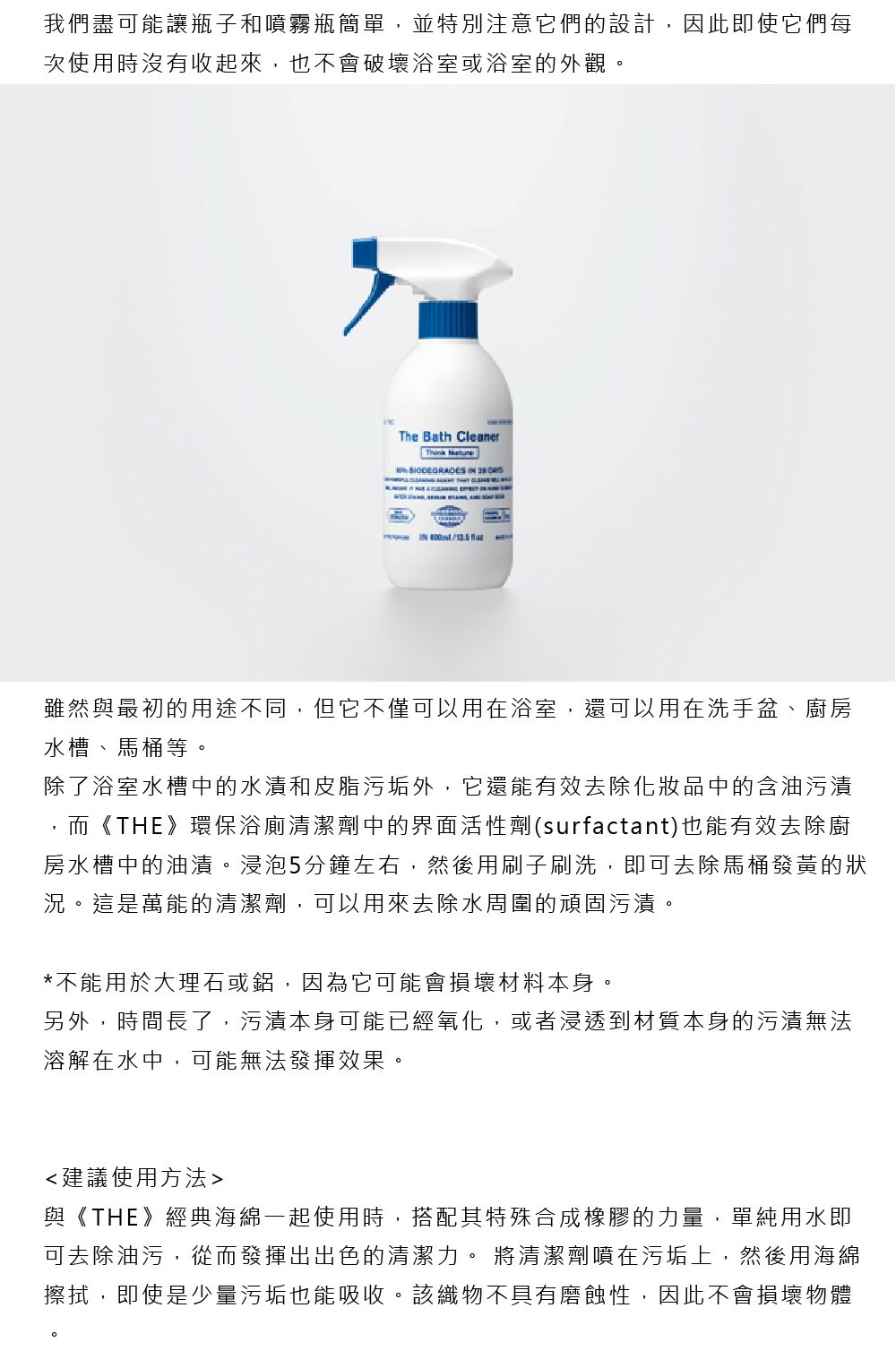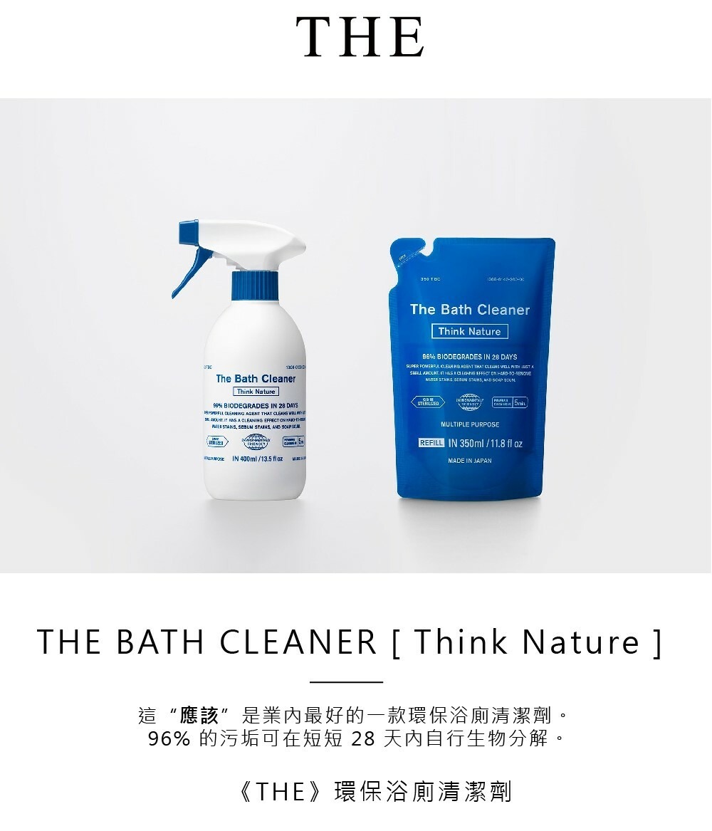 《THE》BATH CLEANER是一款具有超強清潔力的環保浴廁清潔劑,只需少量即可徹底清潔。