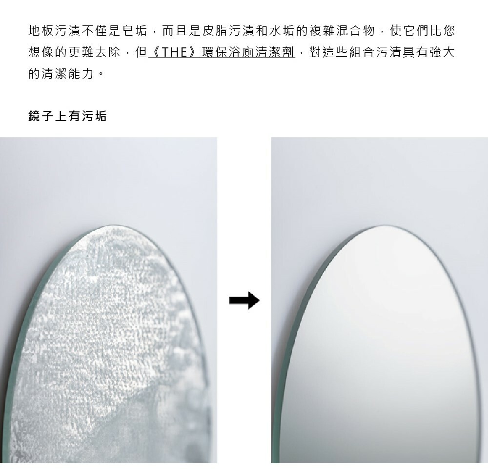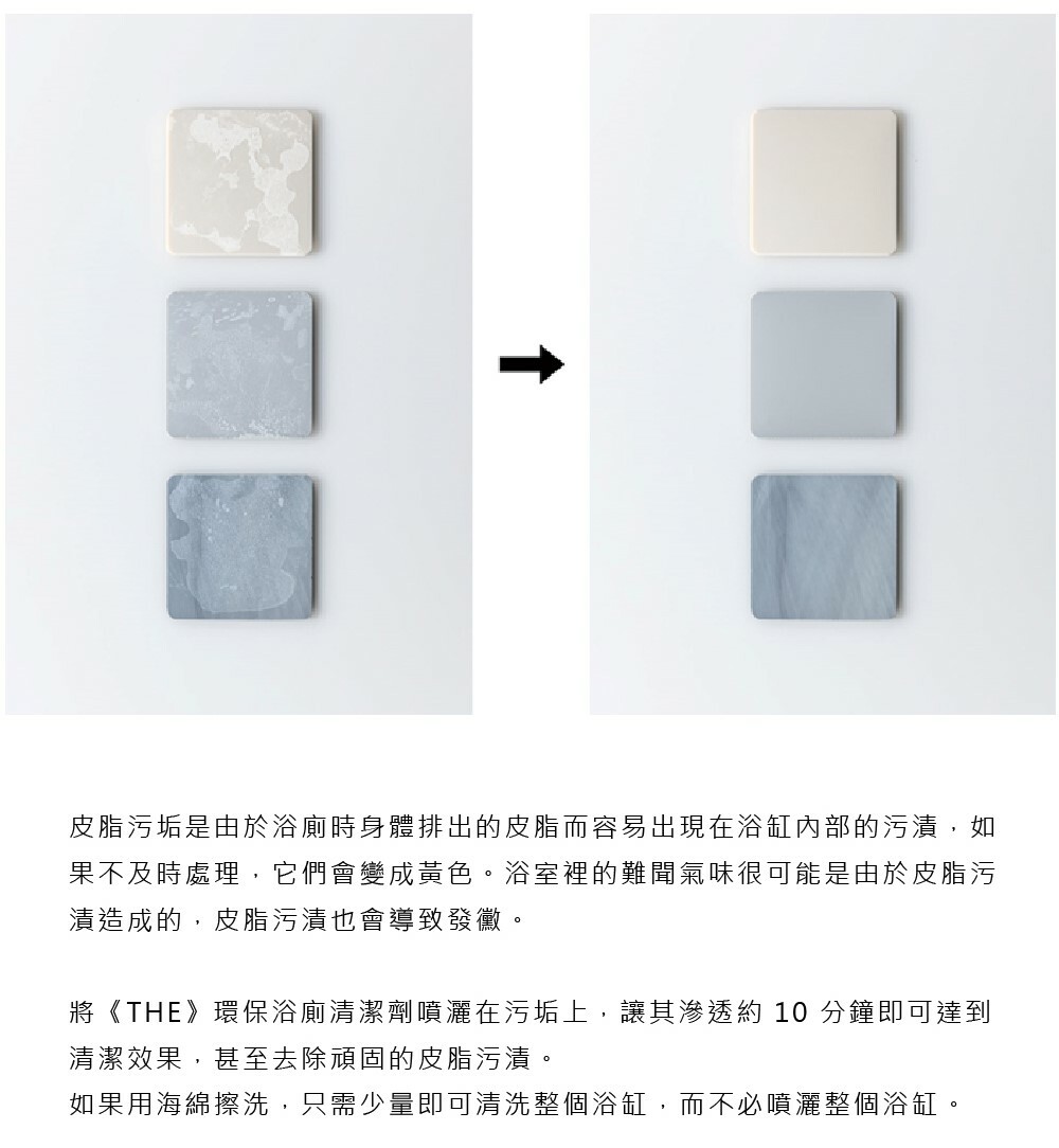 地板污漬不僅是皂垢,而且是皮脂污漬和水垢的複雜混合物,使它們比您想像的更難去除,但《THE》環保浴廁清潔劑,對這些組合污漬具有強大的清潔能力。