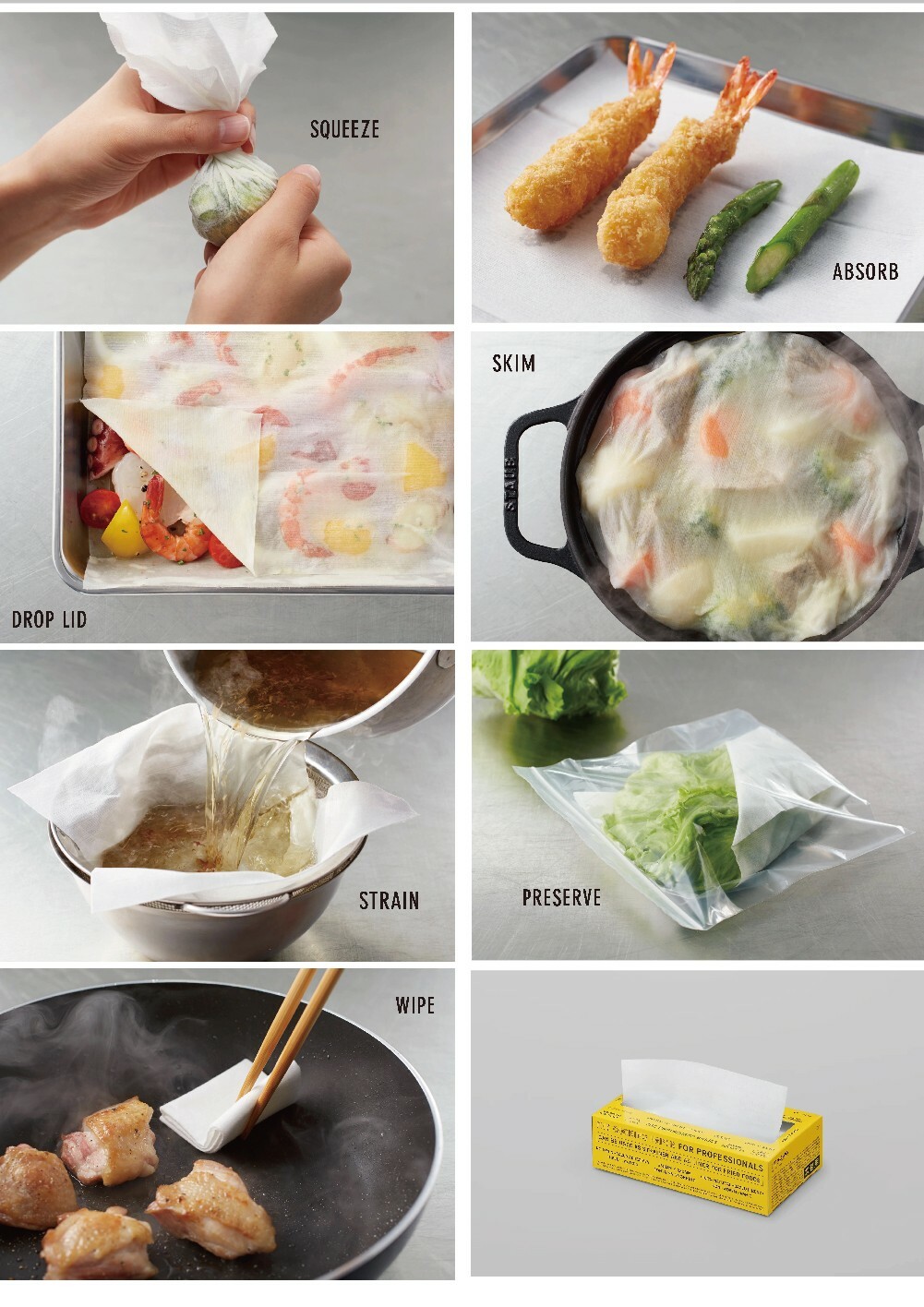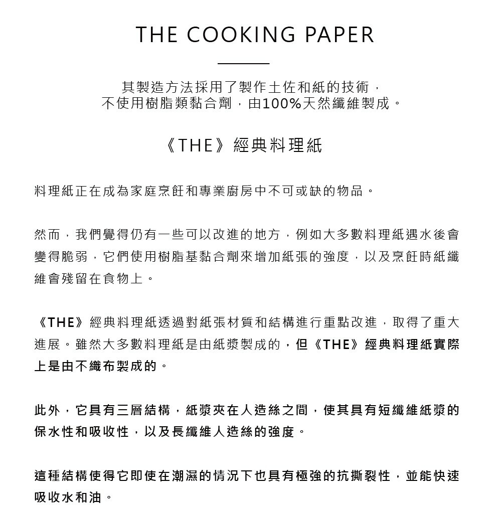 《THE》經典料理紙透過對紙張材質和結構進行重點改進,取得了重大進展。雖然大多數料理紙是由紙漿製成的,但《THE》經典料理紙實際上是由不織布製成的。