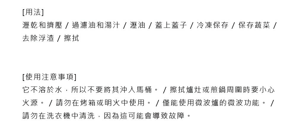 大多數料理紙遇水後會變得脆弱,它們使用樹脂基黏合劑來增加紙張的強度,以及烹飪時紙纖維會殘留在食物上。