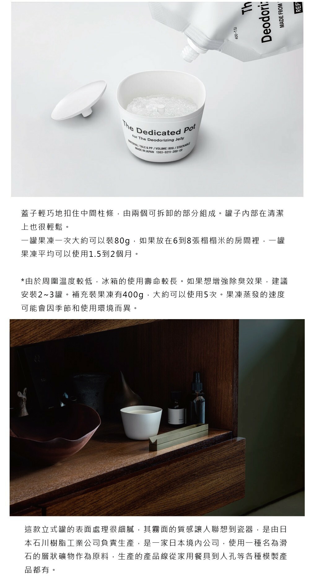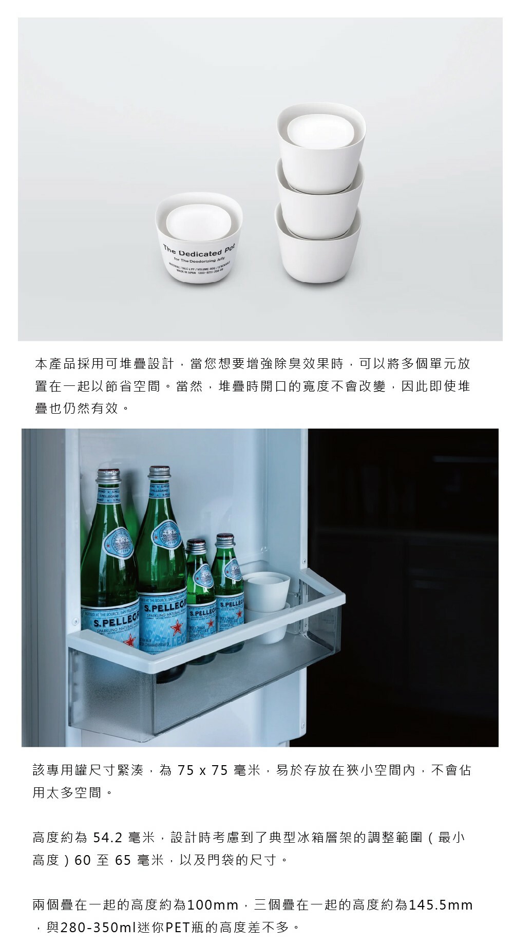 採用天然成分製成的除臭果凍和專利設計的可堆疊罐。