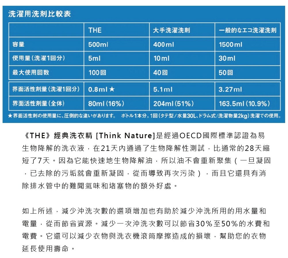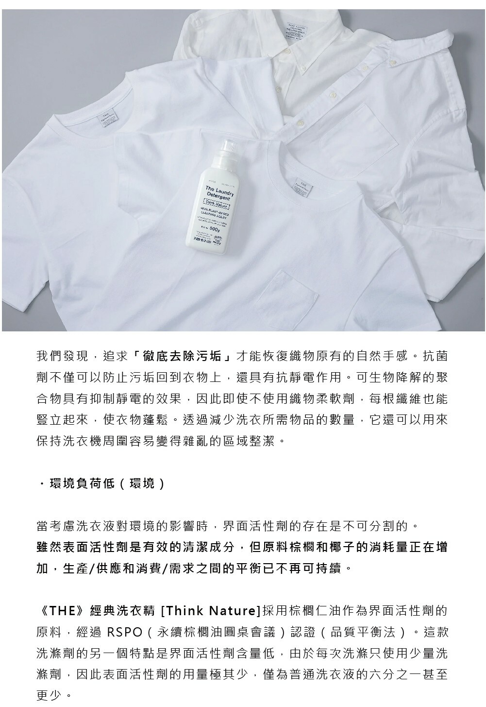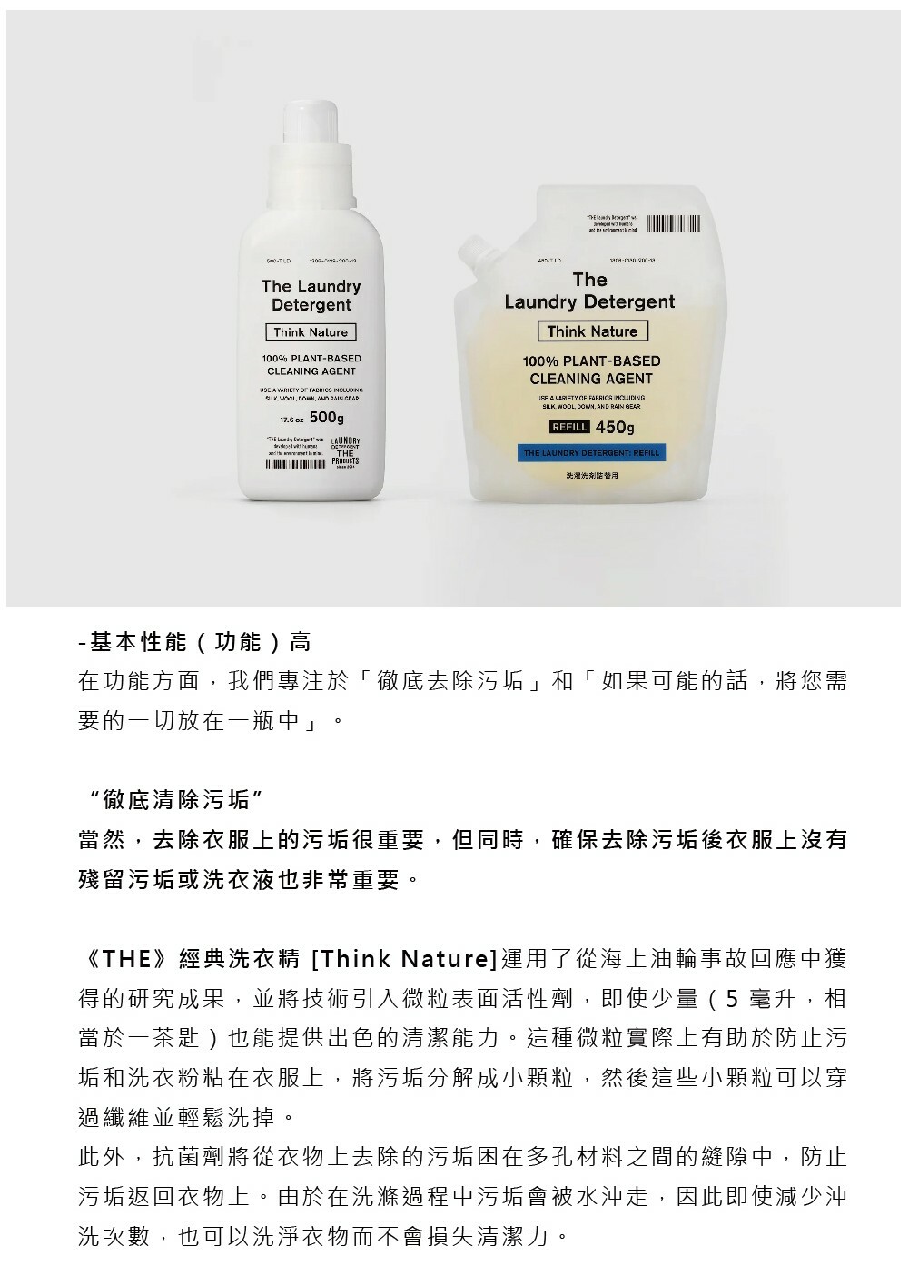 THE認為,如果能夠創造出一種環保的洗衣液,同時又不損害(事實上是增強)它的功能性和便利性,那麼它將值得成為未來的新標準,這也是 THE 的核心價值。