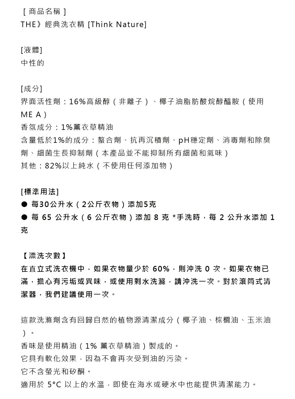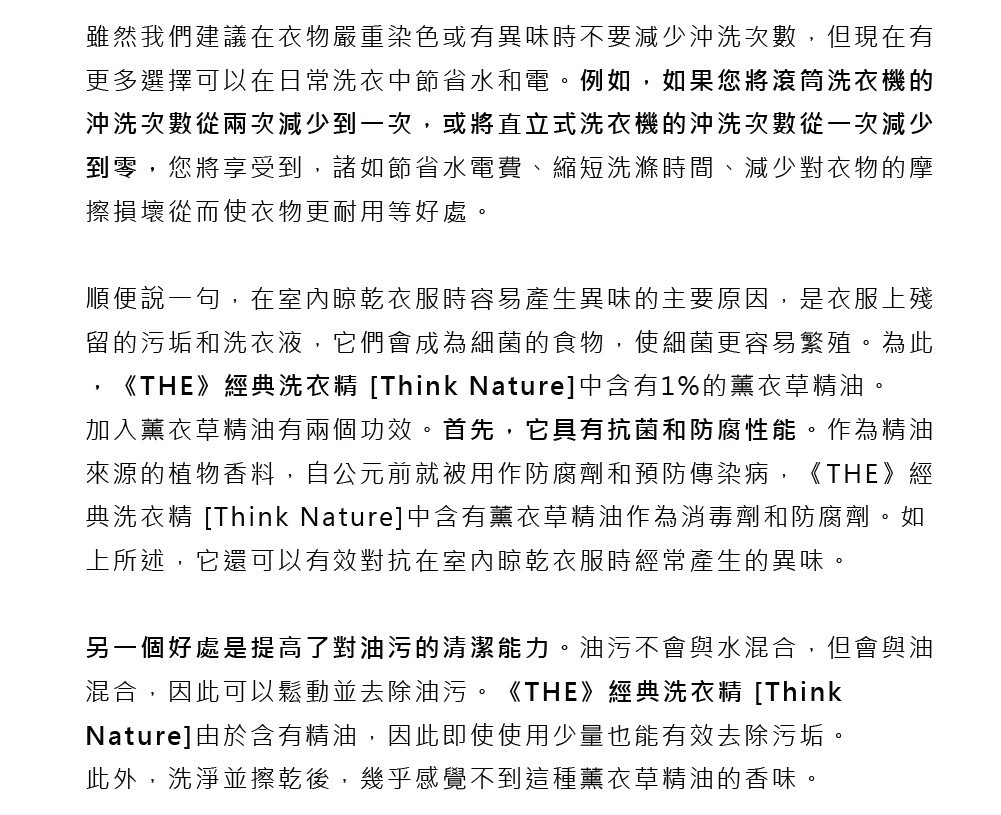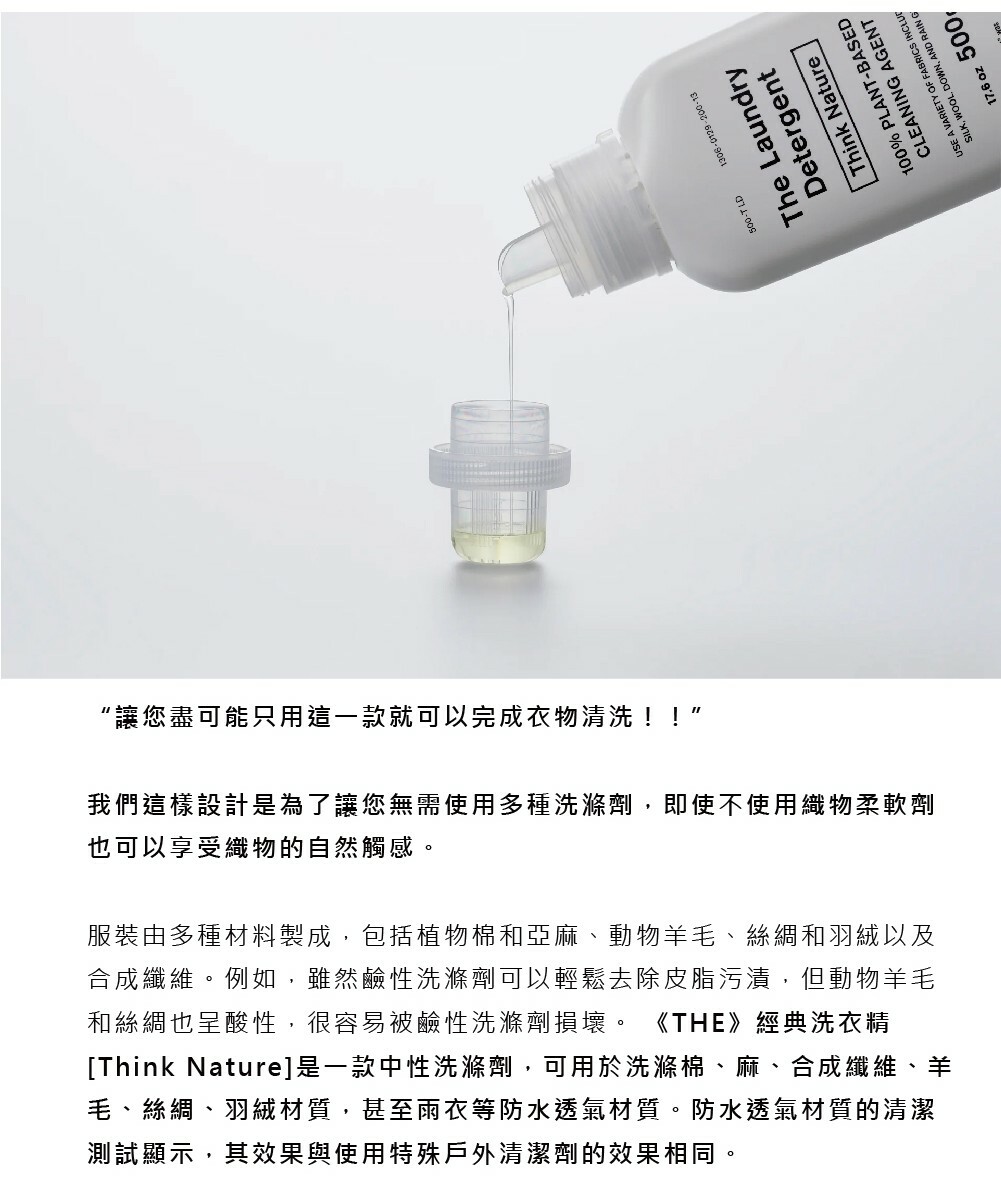 THE認為,如果能夠創造出一種環保的洗衣液,同時又不損害(事實上是增強)它的功能性和便利性,那麼它將值得成為未來的新標準,這也是 THE 的核心價值。