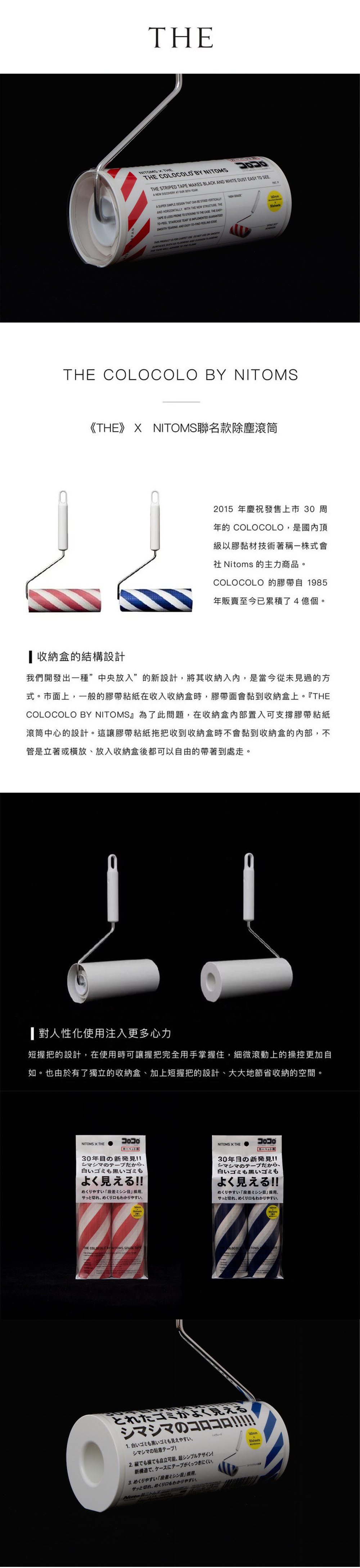可愛的紅x白、藍x白條紋,不僅是用來裝飾,而是有其功能性。這樣的設計讓清潔黏起的小垃圾,不論是淺色(接近白色)的毛絮、或是深色(接近紅/藍)的灰塵等,分類出來更加一目了然。