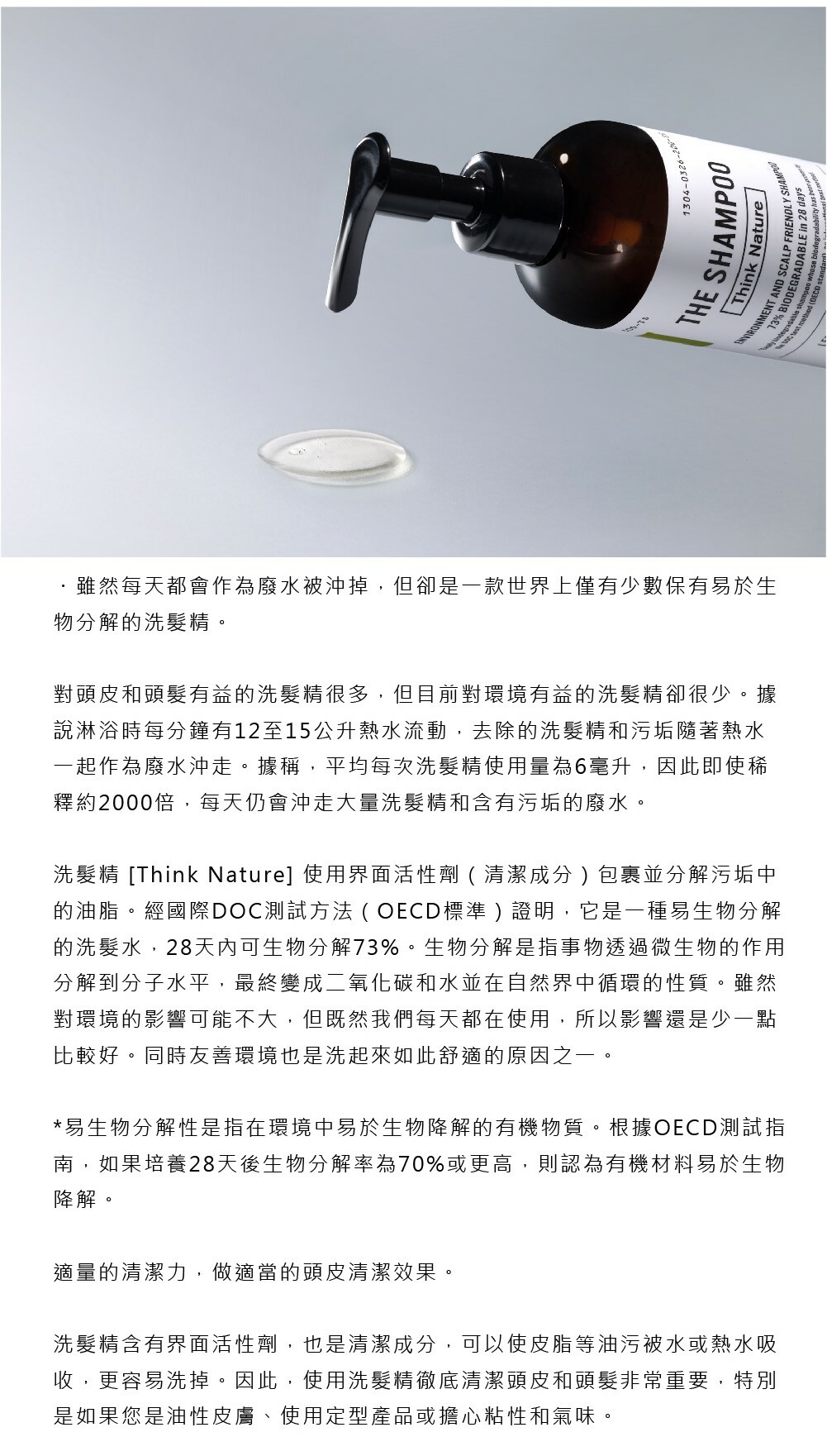 並兼具環保性及易於生物分解的洗髮精。