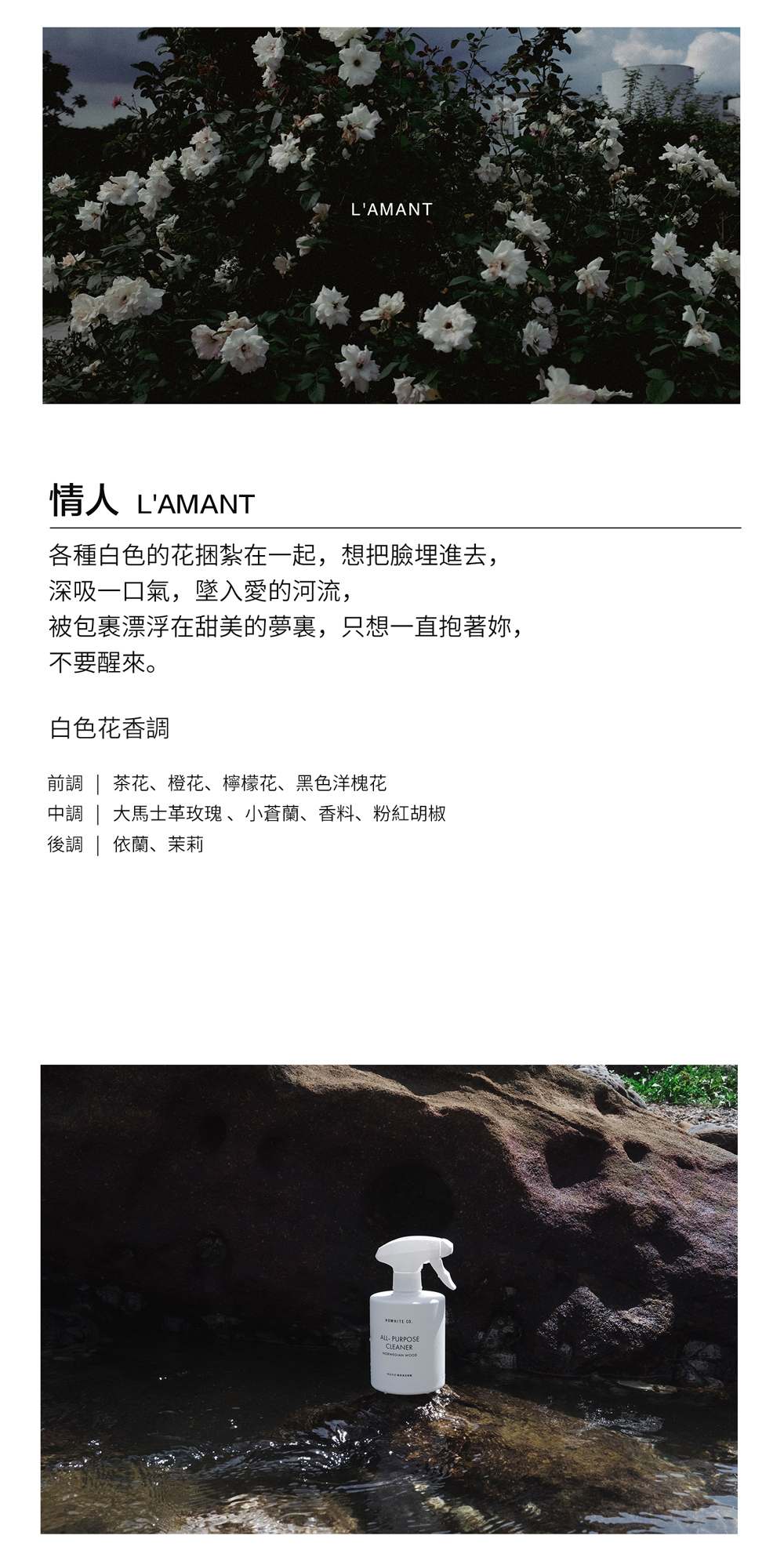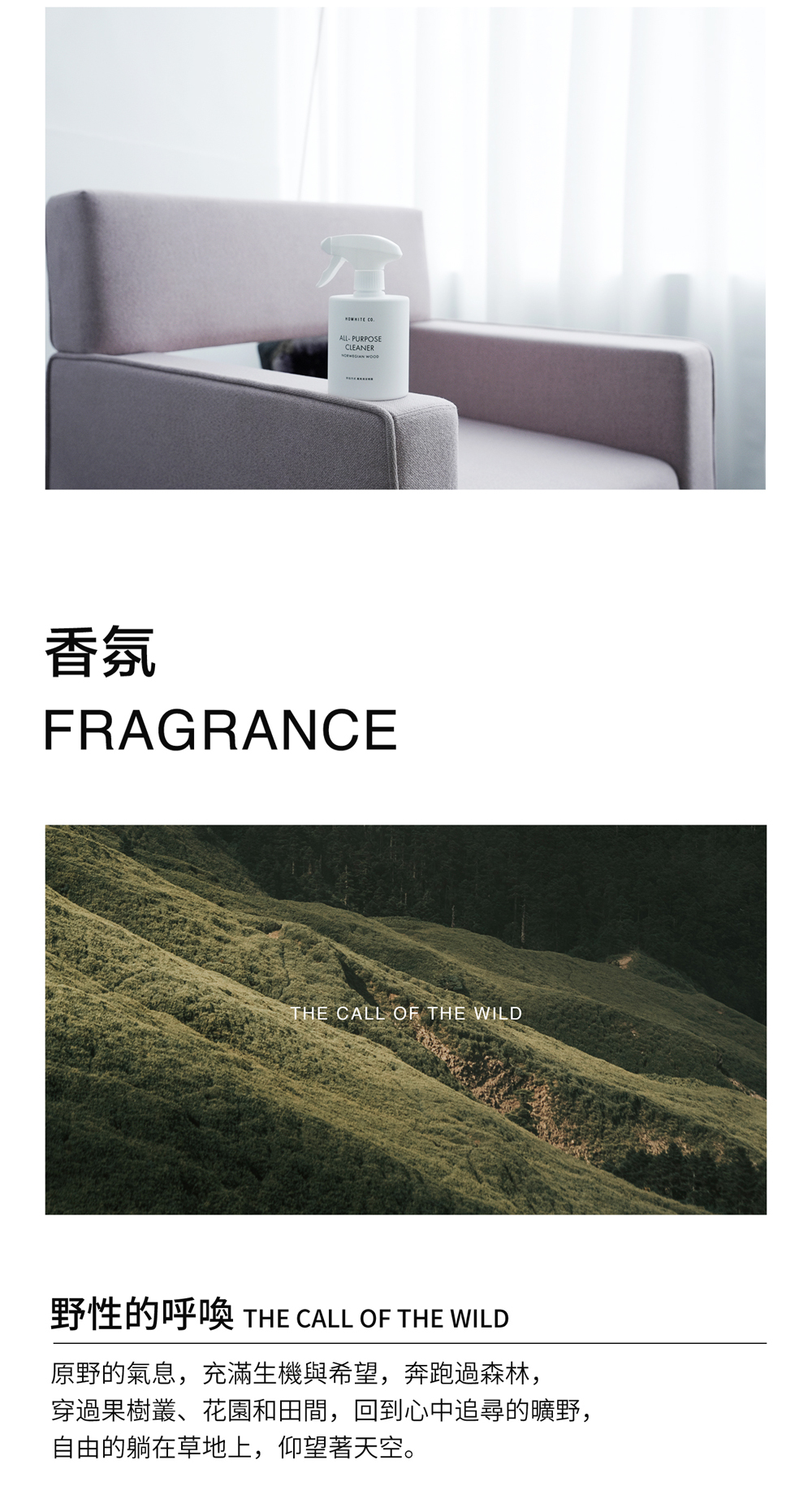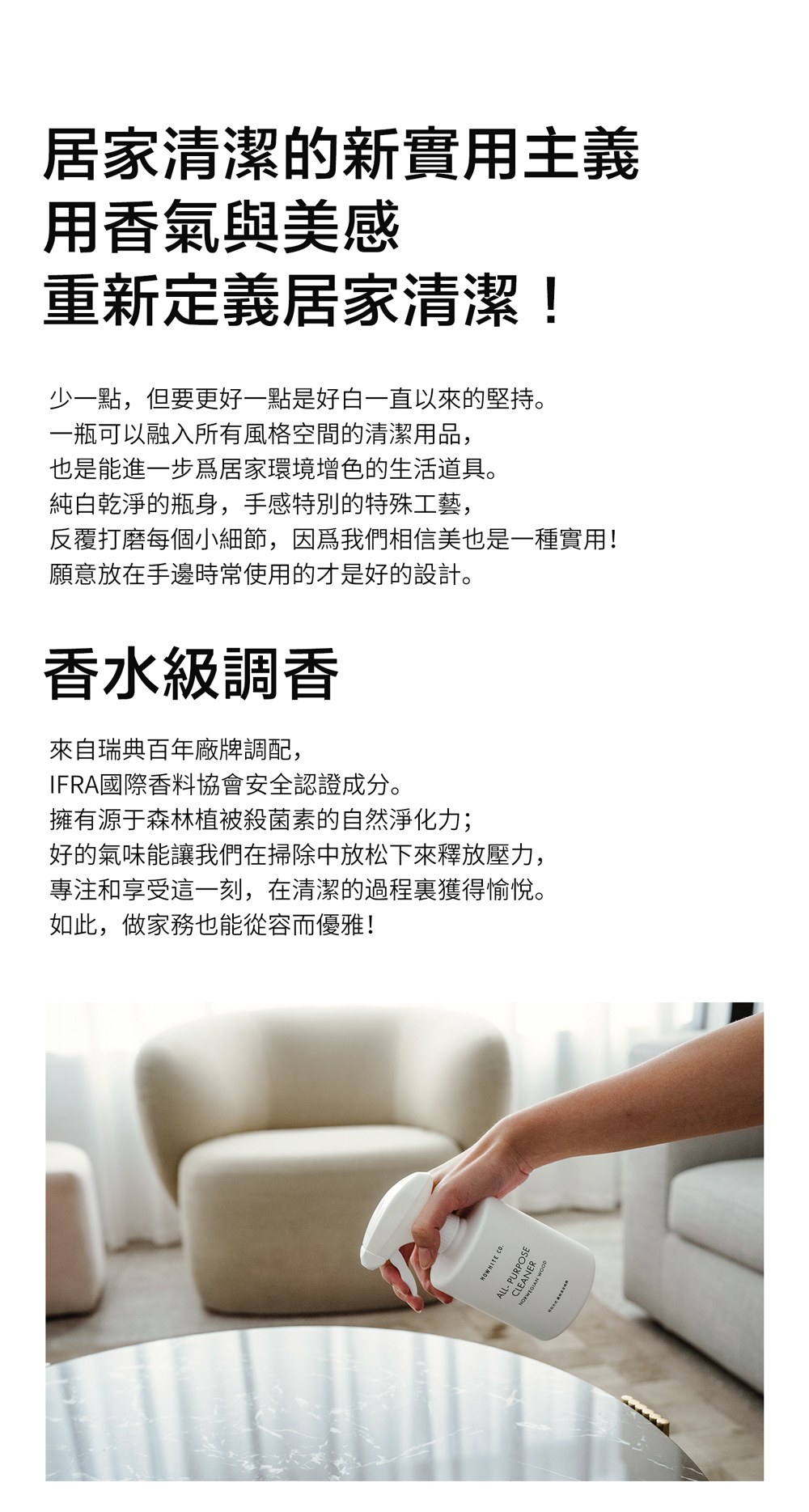從玄關、客廳、廚房餐桌到臥室、浴室、陽台,一瓶可以用在所有硬質表面的香氛清潔抗菌噴霧,輕輕一噴一擦,去除髒污之外也有效消滅細菌消除過敏原,天然溫和成份,不傷手及家具器物,同時在空間中留下讓人愉快的香氣。