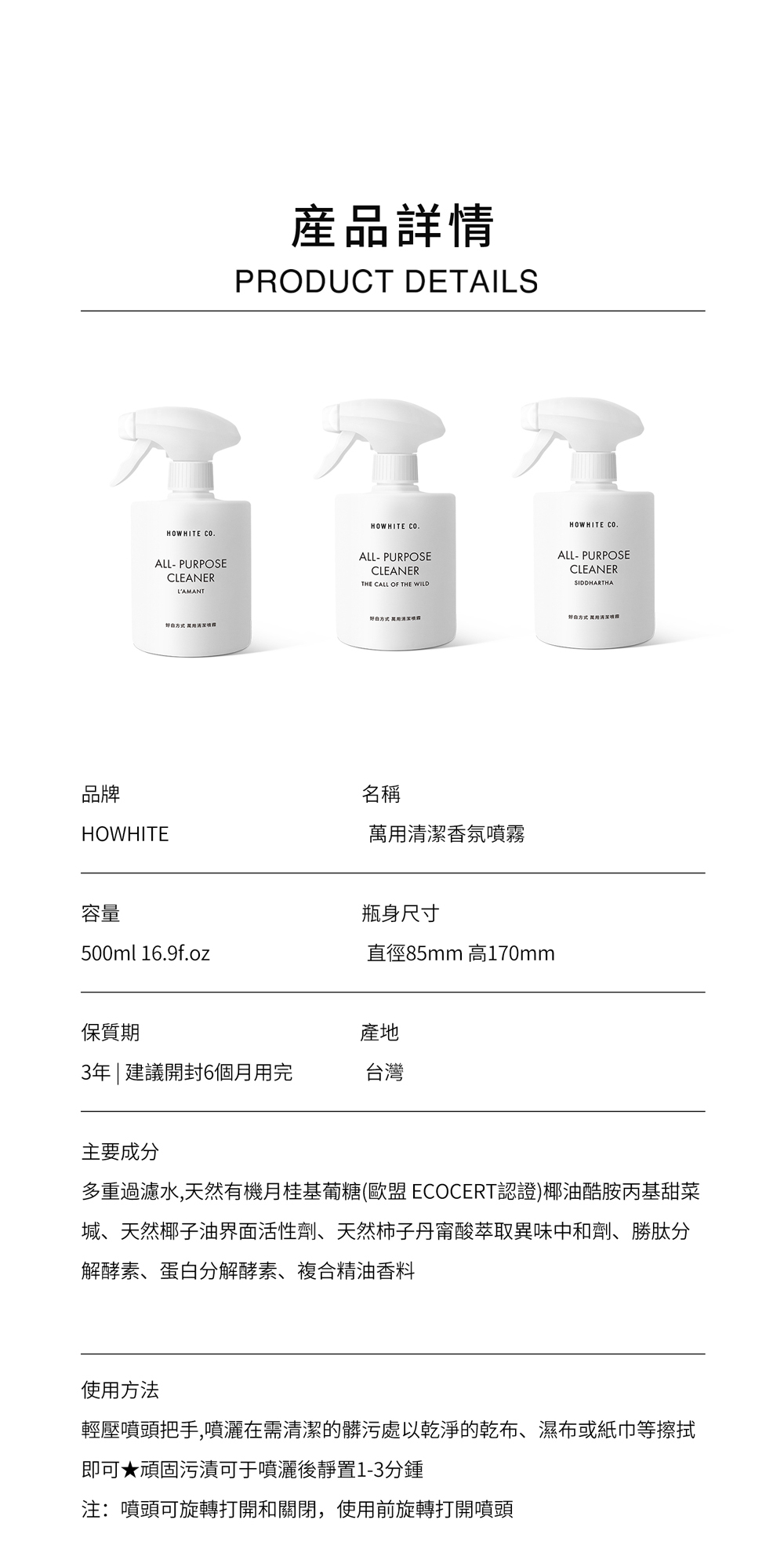 好白方式 HOWHITE 萬用清潔噴霧系列