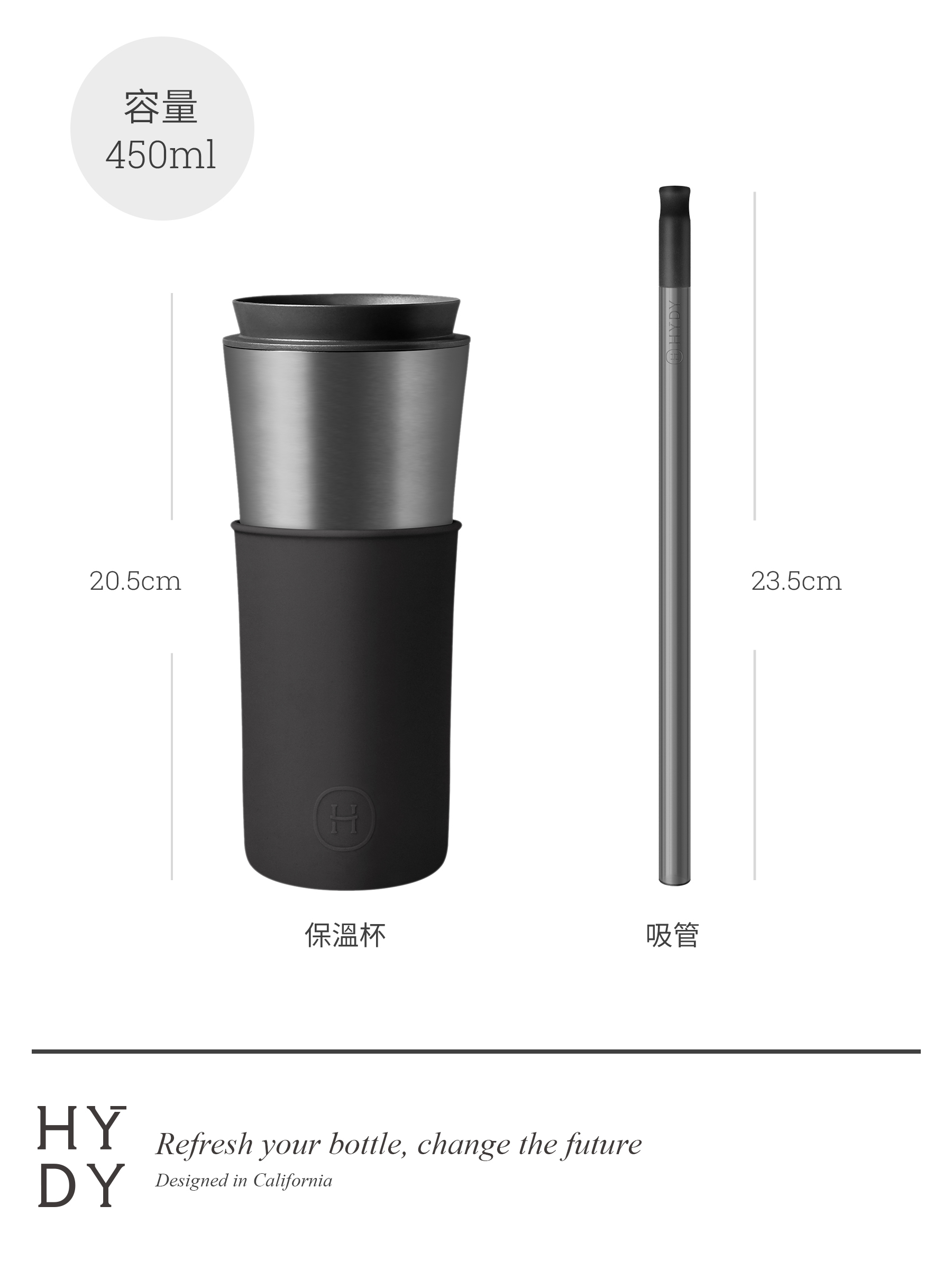 HYDY兩用隨行保溫杯-鈦灰(午夜黑)450ml