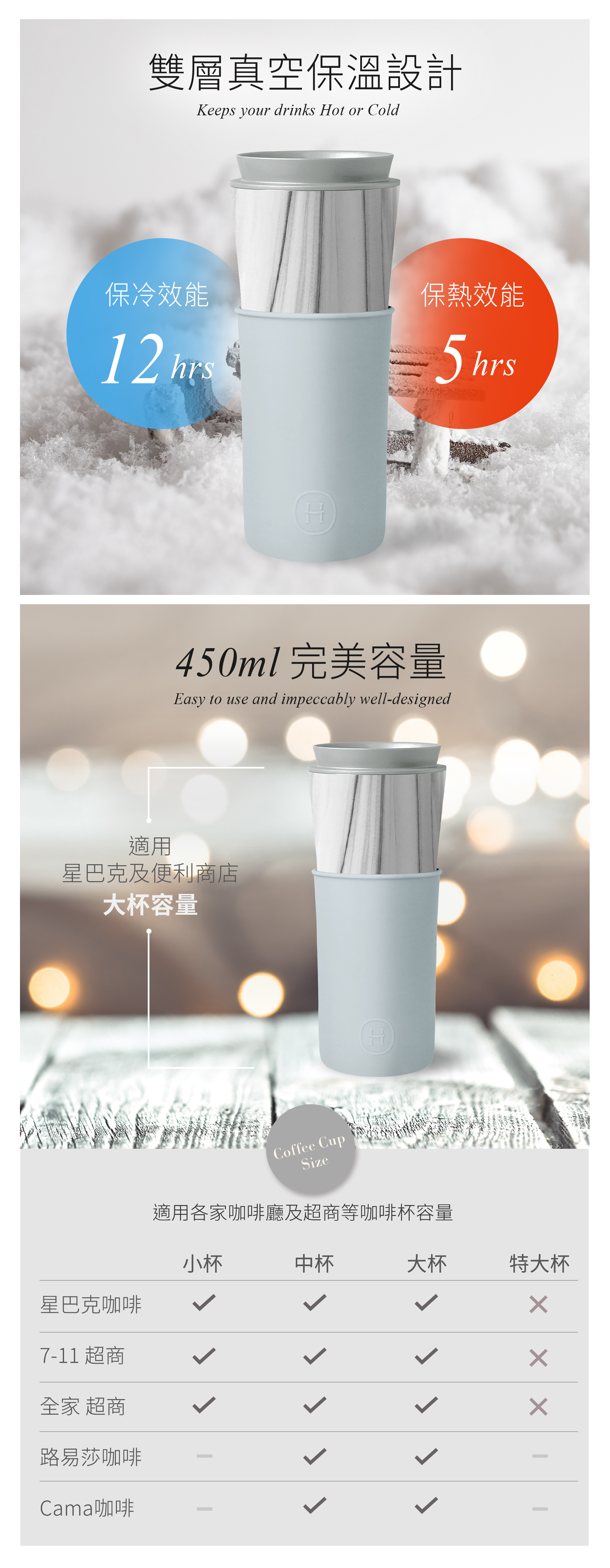 ■ 杯體效能:保溫5小時、保冷12小時